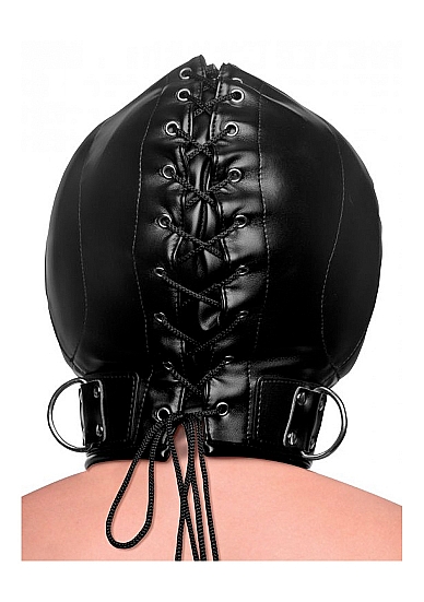 Zawiąż kaptur i zamknij swoją uległość w ciemnościach maski. Poduszka uszna zapewnia, że każdy dźwięk będzie