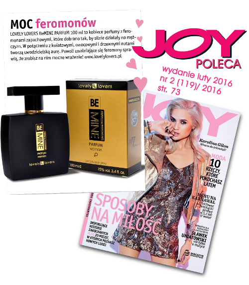 W lutowym wydaniu 2 (119)/2016 magazynu JOY perfumy LOVELY LOVERS BEMINE 100ml zostały wyróżnione jako najlepsze perfumy na Walentynki 2016, dzięki subtelnej mocy kuszących feromonów! Dziękujemy!