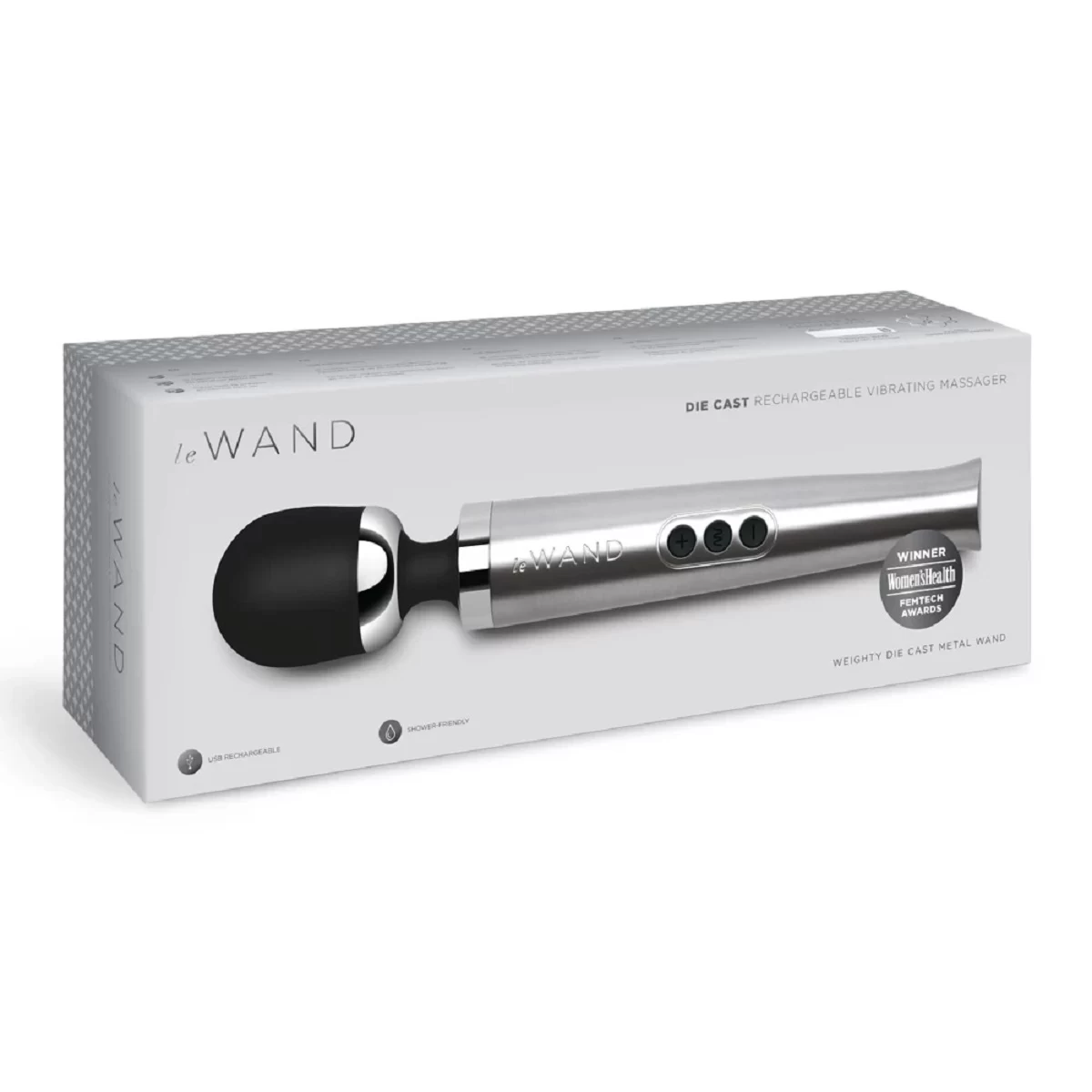 Luksusowa różdżka do masażu Die Cast Rechargeable by le Wand dla intensywnej przyjemności masażu. W klasycznym kształcie różdżki - ale bardziej kompaktowa, nieco mniejsza i znacznie łatwiejsza w obsłudze! Odlewana metalowa obudowa przyciąga wzrok. Możliwość ładowania dla niekończącej się przyjemności w pojedynkę lub z partnerem.