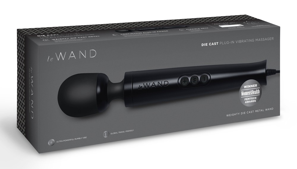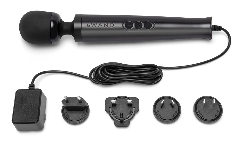 Diecast Plug-In jest niezawodnie zasilany bezpośrednio przez bardzo długi kabel zasilający, który zapewnia nieprzerwane zasilanie. W zestawie znajdują się 4 różne adaptery wtykowe, dzięki czemu różdżka do masażu może być używana na całym świecie (np. podczas podróży). W zestawie znajduje się również wysokiej jakości torba do przechowywania.