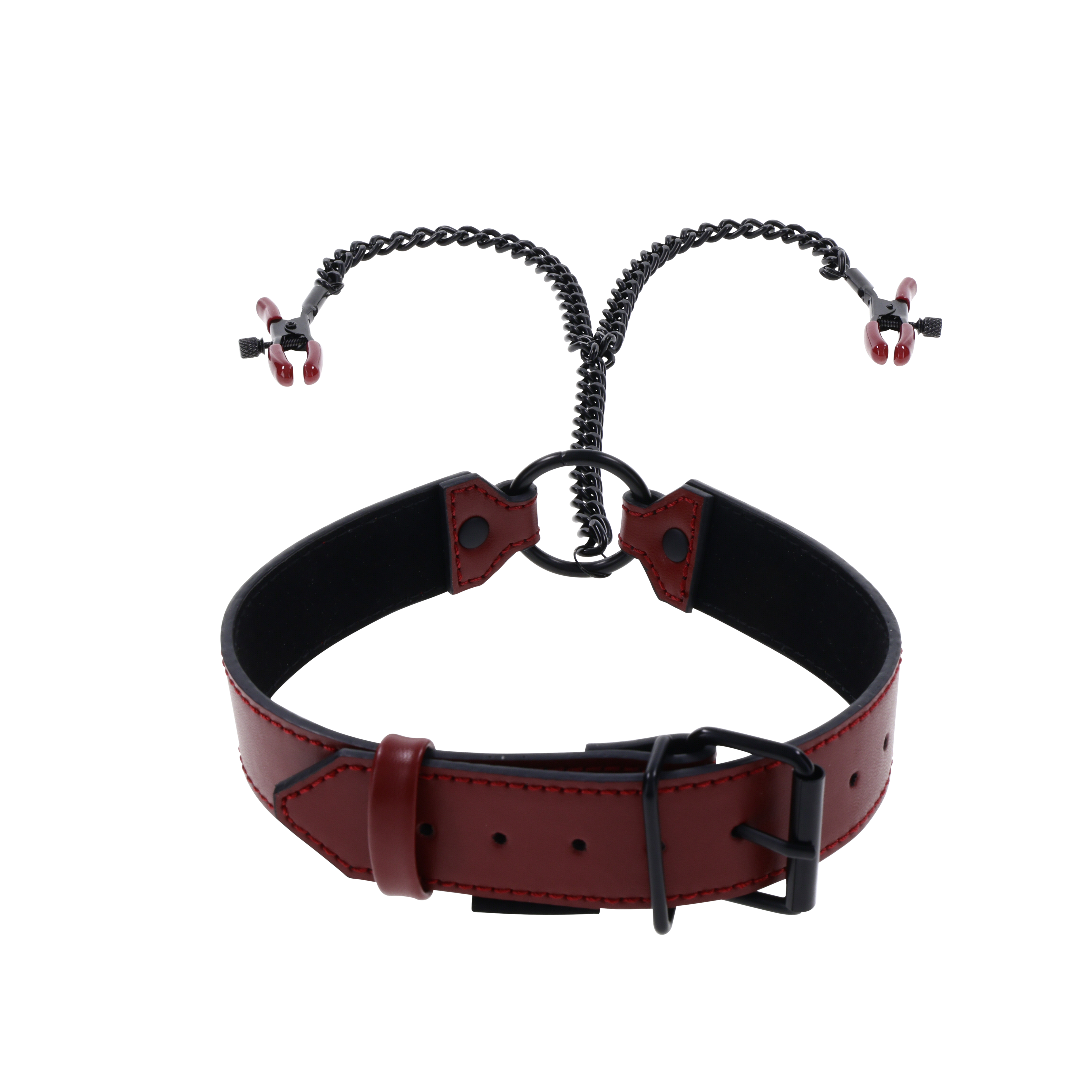 Rozkoszuj się sztuką uwodzenia dzięki odurzająco głębokim odcieniom czerwieni Saffron Collar z zaciskami na sutki. Ten uwodzicielski dodatek jest tak urzekający jak dobre wino, co czyni go idealnym dodatkiem do Twojej intymnej kolekcji. Jego wykwintny czarny pierścień O dodaje odrobinę tajemniczości i wyrafinowania, tworząc subtelną i zabawną zmysłowość, która działa jako obroża dzienna do długotrwałego użytku. Poczuj kuszące poczucie połączenia z delikatnym łańcuszkiem, prowadzącym do kuszących zacisków na sutki, zapraszających Cię do odkrywania granic przyjemności. Odkryj świat możliwości, wyruszając w intymną podróż, która jest zarówno elegancka, jak i sugestywna.