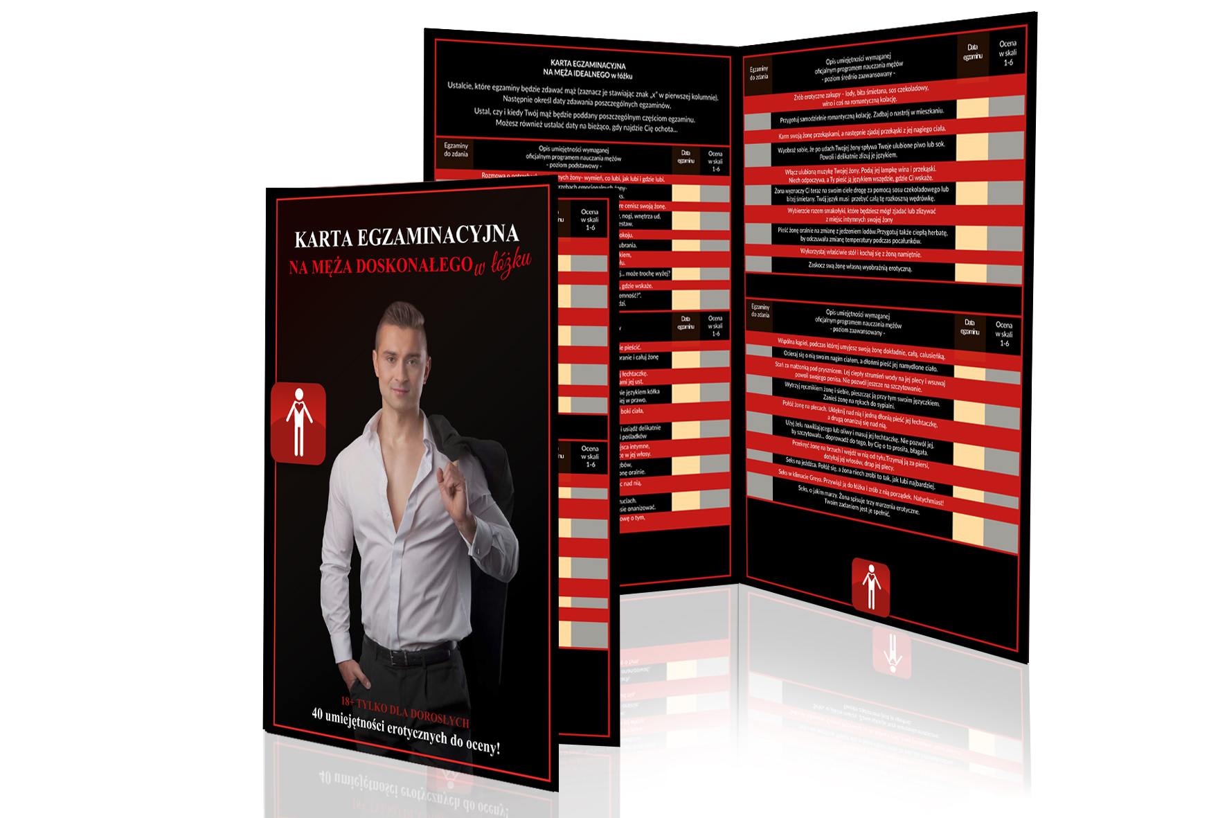 Karta egzaminacyjna męża idealnego w łóżku to zabawa erotyczna w której żona, może przeegzaminować swojego świeżo poślubionego męża. Maż staje przed swoim egzaminatorem wyposażonym w listę umiejętności wymaganych przez oficjalny program edukacji erotycznej dla mężów.To żona - nauczycielka decyduje, w jakiej kolejności będą wykonywane zadania egzaminacyjne i wystawia mężowi odpowiednią ocenę. Jeżeli ocena będzie niska, partner może próbować starać się o poprawienie swojego wyniki - do czego zachęcamy.