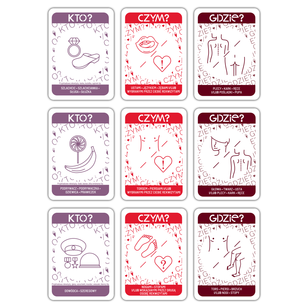 Karty CZYM? określają, którymi częściami ciała lub jakim gadżetem, należy sprawiać rozkosz.