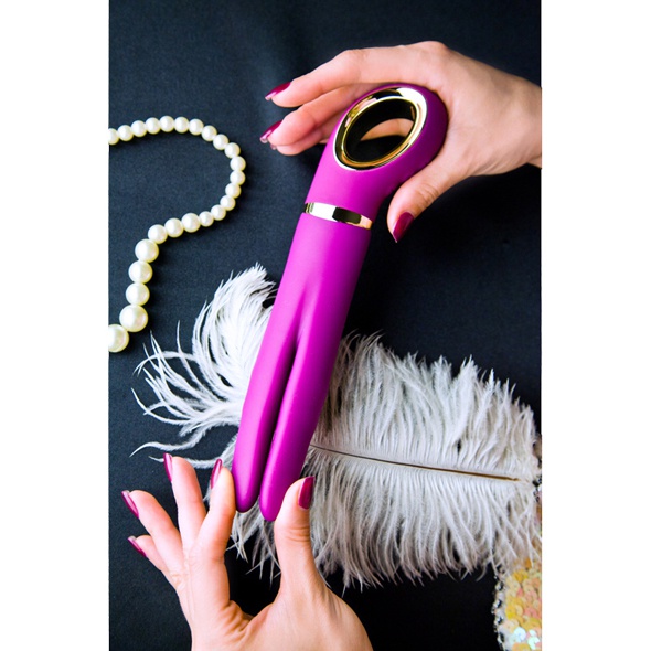 Unikatowy kształt i jakże pomysłowe rozwiązanie pozwala na jednoczesną stymulację punktu G, leżącej po przeciwnej stronie ścianki pochwy oraz wejścia do niej oraz wiele innych sposób pobudzenia, zarówno mężczyzny jak i kobiety. Wibrator daje dzięki swoim sprężystym ramionom uczucie rozkosznego wypełnienia a trzy silniczki uderzają drganiami we wrażliwe miejsca serwując nam niesamowicie pełną i przejmującą ekstazę.