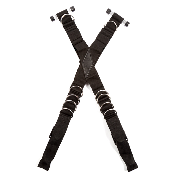 Można dzięki nim rozpiąć w pozycji X twarzą do osoby dominującej lub pośladkami. Pasy są regulowane, zapięcia również, więc nie będzie problemu z dopasowaniem do pozycji i wzrostu. Oczywiście w komplecie znajdują się cztery opaski na ręce i nogi, których możemy używać zarówno na kobiecie jak i na mężczyźnie. Miękkie, wygodne, zapinane na taśmy velcro, zapewniają komforty przy sesji i pewne krępowanie. Można je odpiąć i używać osobno.