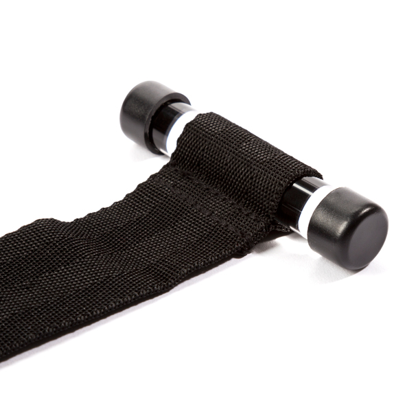 Konstrukcja pasów jest spotykana również w innych akcesoriach – zakończone są na grze poziomymi blokadami. Są one solidne, a należy je przewiesić przez drzwi a następnie zamknąć je mocno. Pasy zatrzaskiwane są przed drzwi, blokada nie pozwala na ich wysuniecie a my otrzymujemy funkcjonalny krzyżak do praktyk BDSM.