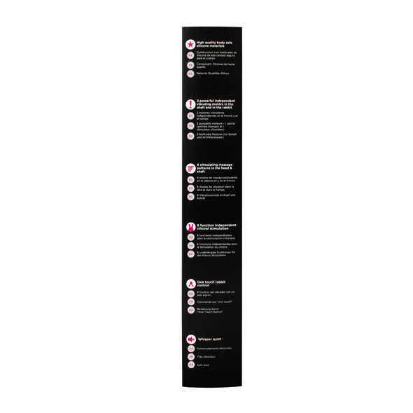 Charakterystyczny króliczek, stymulator łechtaczki, w tym modelu pokryty jest dla większej skuteczności miniaturowymi wypustkami, pozwalającymi na mocniejsze pobudzenie i większą różnorodność pieszczoty.