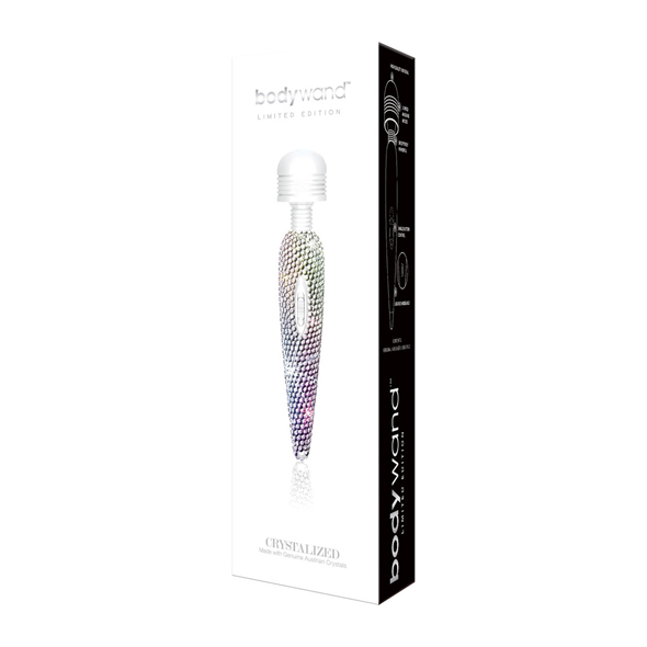 Masażer naprawdę czarujący swoim wyglądem – pokryta kryształkami rękojeść mieni się różnokolorowymi odblaskami sprawiając, że stymulator jest nie tylko bardzo skutecznym ale też bardzo ładnym przyrządem rozkoszy.