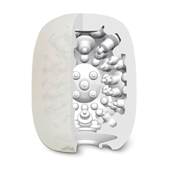 Masturbator wykonany jest z rozciągliwego tworzywa żelowego, pasującego na każdego członka. Otulony jędrnym żelem penis pobudzany jest bardzo skutecznie, tym mocniej, że w komplecie znajdziemy też opakowanie żelu nawilżającego. Na uwagę zasługuje też mocno kompaktowa forma – nakładka jest faktycznie niewielka i można ją schować w przysłowiowej kieszeni.