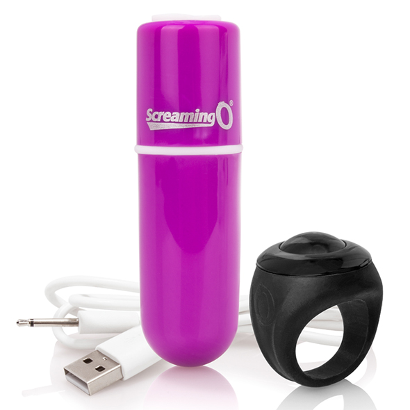 Potężny mini wibrator ze zdalnym sterowaniem - The Screaming O Charged Remote Control Vooom Bullet Fioletowy