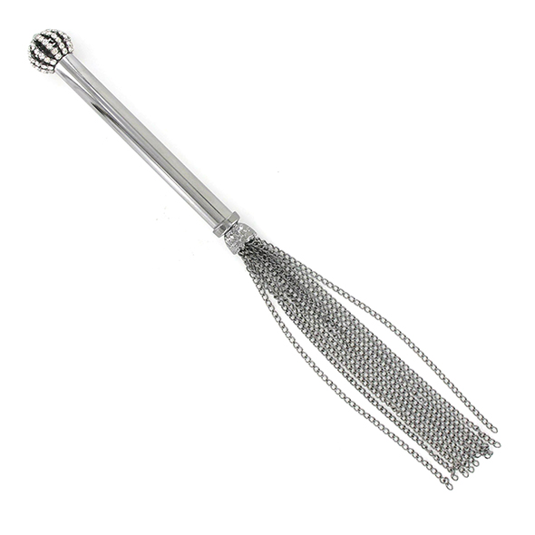 Ozdobny miniaturowy pejcz przeznaczony do zabaw w stylu bondage oraz do gry wstępnej. Raczej nie nadaje się do regularnej chłosty. Można oczywiście nim uderzyć, ba dzięki ogonom wykonanym z łańcuszków cios będzie nawet bolesny, ale sugerujemy zatrzymać ten bacik do bardziej rozrywkowego niż profesjonalnego BDSM. A tu nada się znakomicie. Lekkie wodzenie po skórze pejczem wywołuje wrażenia bardzo przyjemne, stymulujące, stawiające na baczność równie skutecznie jak pieszczota. Użyty w okolicach miejsc intymnych jak uda, brzuch, podbrzusze, genitalia skutecznie potrafi rozbudzić podniecenie i może być świetnym uczestnikiem gry wstępnej. Partner czy partnerka może być przy tym skrępowany, co na pewno doda pikanterii waszej zabawie, a sporadyczne smagnięcie pejczykiem umiejętnie połączy przyjemność z bólem.