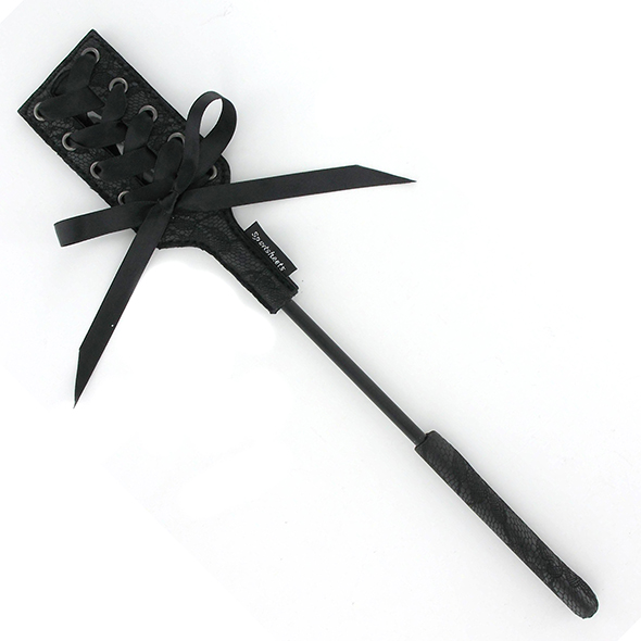 Jedyna w swoim rodzaju szpicruta, której packa wzorowana jest na sznurowaniu gorsetu. Przewleczona czarna wstążeczka z elegancką koronką robi zaskakująco zmysłowe wrażenie. Prócz tego oczywiście szpicruta działa bardzo klasycznie. Wymierzone nią klapsy są stanowcze, ich skupienie na małej powierzchni przekłada się na głośne i piekące uderzenie. Oczywiście wszystko zależy od siły ciosu i można też używać jej do bardziej delikatnych klapsów czy wręcz subtelnego i zmysłowego wodzenia po ciele , budującego napięcie w oczekiwaniu na nadchodzące uderzenie. Jak na szpicrutę nie jest zbyt długa, brak tu możliwości uzyskania mocnego zamachu i prawdziwie bolesnej chłosty. Będzie za to świetną propozycją dla osób podchodzących do bondage z dystansem i nie szukających w nim dużego bólu a raczej fizycznego i psychicznego oddania, dominacji. Czyli dla większości zaczynających przygodę czy oddających się lekkiemu BDSM ze stałym partnerem czy też szukających sposobów na rozpalenie związku i nowe doznania.