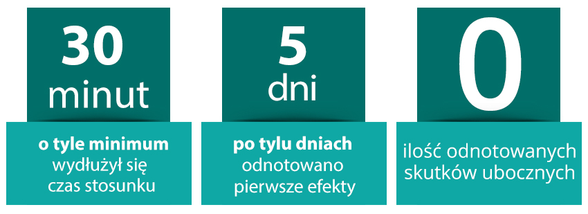 Żeń-szeń wspiera układ odpornościowy, funkcje poznawcze, przyczynia się do zmniejszenia uczucia zmęczenia i znużenia oraz wzmacnia sprawność fizyczną i umysłową. Często stosuję się go na problemy z przedwczesnym wytryskiem.