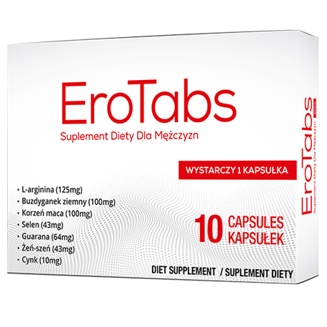 EroTabs to jedyny taki produkt, który kiedykolwiek powstał na rynku! Doceniony przez klientów, szczerze polecany przez specjalistów! W czym drzemie jego siła? To niesamowita kompilacja składników. Idealnie dobrane proporcje sprawiają, że znane wcześniej składniki, wspomagane nowymi dają niesamowite efekty! Twoja erekcja będzie jak nigdy dotąd!