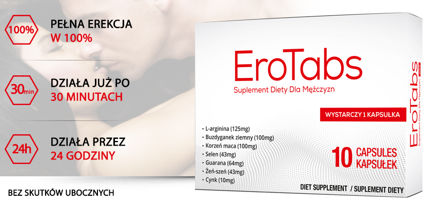 Składniki zawarte w EroTabs to znane od wieków ziołowe składniki, które zwiększają poziom libido i przywracają siły witalne. EroTabs przyczynia się do łatwiejszych i szybszych erekcji w niedługim czasie od spożycia. Efekt ten utrzymuje się przez kilka godzin. Pomaga mężczyznom w sposób zdumiewający odzyskać satysfakcję we współżyciu seksualnym.