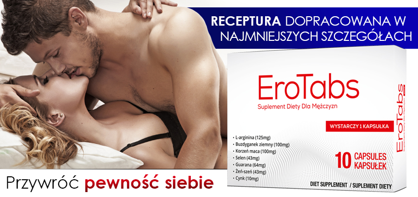 Jedyny w swoim rodzaju tak kompletny produkt na erekcję, dostępny bez recepty. Jego unikalny ziołowy skład zapewnia korzystny wpływ na zaburzenia wzwodu oraz osiągane orgazmy u mężczyzn. Został stworzony tak, aby w sposób natychmiastowy i satysfakcjonujący pobudzać Twój organizm do erekcji- wystarczy jedna tabletka na 30 minut przed stosunkiem, w zamian otrzymujesz gwarancję długiej i mocnej erekcji nawet do kilku godzin. Regularne stosowanie EroTabs w sposób niezawodny wpływa na długoterminową poprawę Twoich osiągnięć seksualnych.