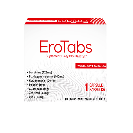 EroTabs to jedyny taki produkt, który kiedykolwiek powstał na rynku! Doceniony przez klientów, szczerze polecany przez specjalistów! W czym drzemie jego siła? To niesamowita kompilacja składników. Idealnie dobrane proporcje sprawiają, że znane wcześniej składniki, wspomagane nowymi dają niesamowite efekty! Twoja erekcja będzie jak nigdy dotąd!