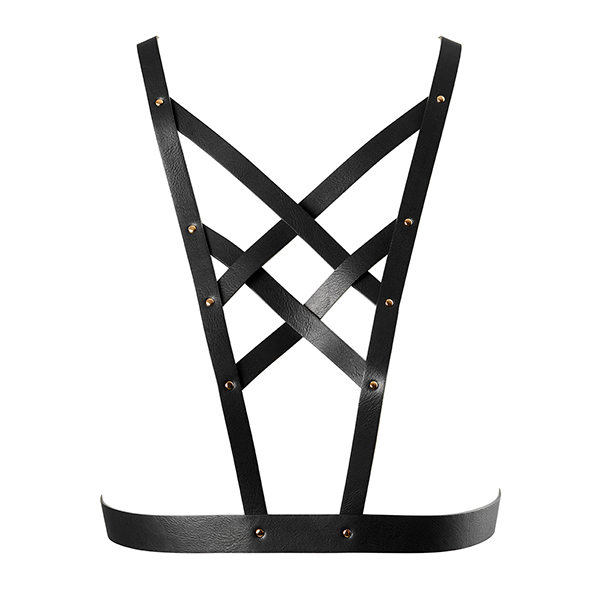 Celem tego stroju jest przyciągać uwagę i podkreślać kobiece atuty. I udaje się to bez problemu. Paski pokrywają dekolt krzyżującą się siecią, w centrum której znajdziemy rowek między piersiami. Odcięcie na dole, w postaci poziomego paska, jeszcze mocniej skupia uwagę na tym właśnie fragmencie ciała. Nic więc dziwnego, że uprząż założona na nagie ciało w czasie wieczoru we dwoje będzie budziła tak gorące myśli. Albo w czasie sesji bondage – i tu nałożyć może ją zarówno domina jak i niewolnica.