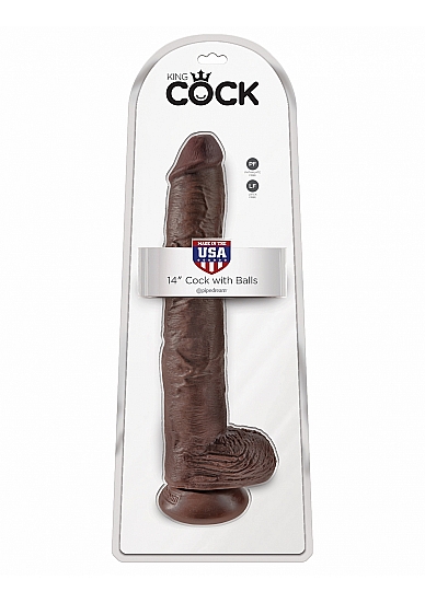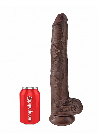 Pipedream King Cock - dildo realistyczne DŁUGI WĄSKI brąz PVC jądra - 36cm (14")