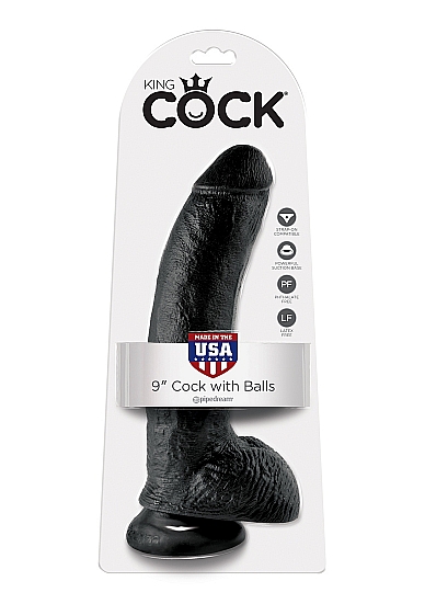 Pipedream King Cock - dildo realistyczne duże CZARNE z jądrami PVC - 23cm (9")