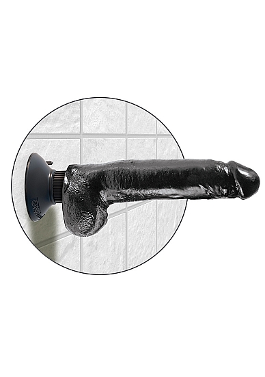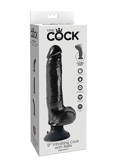 Pipedream King Cock - dildo z jądrami + WIBRACJE MultiSpeed czarne PVC - 23cm(9")