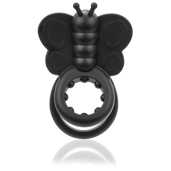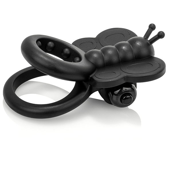 Duży pierścień erekcyjny o intrygującej formie. Jego wygląd wzorowany jest na motylu – mamy tu więc spore skrzydła, wyraźnie zarysowany korpus i oczywiście czułki. Taką stylistykę miało też wiele modeli stymulatorów łechtaczki, noszonych przez kobiety na specjalnych paseczkach. Tutaj również pobudzenie klitorisu jest bardzo ważną kwestią. Cały pierścień wykonany jest z silikonu, więc mięciutki i delikatny w dotyku. W czasie penetracji ociera się on o kobietę, pieszcząc jej łechtaczkę i mocno ją pobudzając. Ponieważ powierzchnia motylka jest duża, w dodatku nierówna, to i stymulacja jest wyraźnie odczuwana. Pracuje on w trzech prędkościach, dodatkowo mogąc też pulsować, co czyni doznania kobiety wyraźnie odczuwanymi.