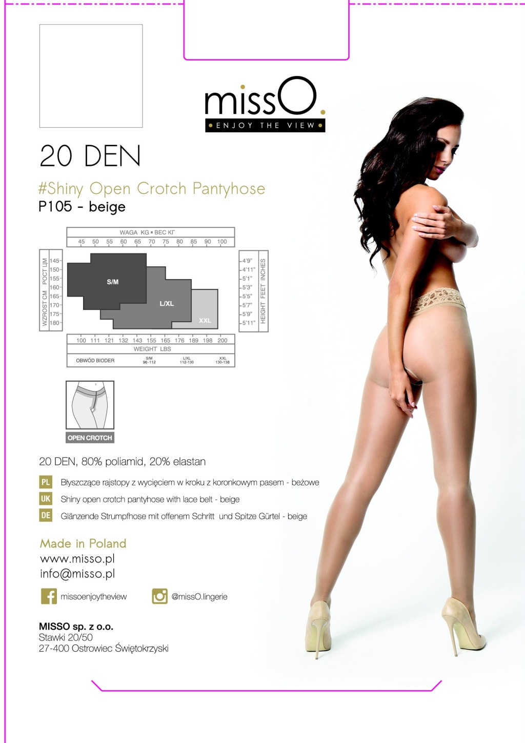 Rajstopy przeznaczone do wszelakich erotycznych uciech, bowiem rozcięcie w kroku bardzo ułatwia dostęp do miejsc intymnych, jednocześnie nie rujnując garderoby. Grubość klasyczna, 20DEN, będzie wygodna i dobrze się nosząca czy to w sypialni czy do codziennego ubioru, spod którego dopiero później ukaże się w całej krasie.