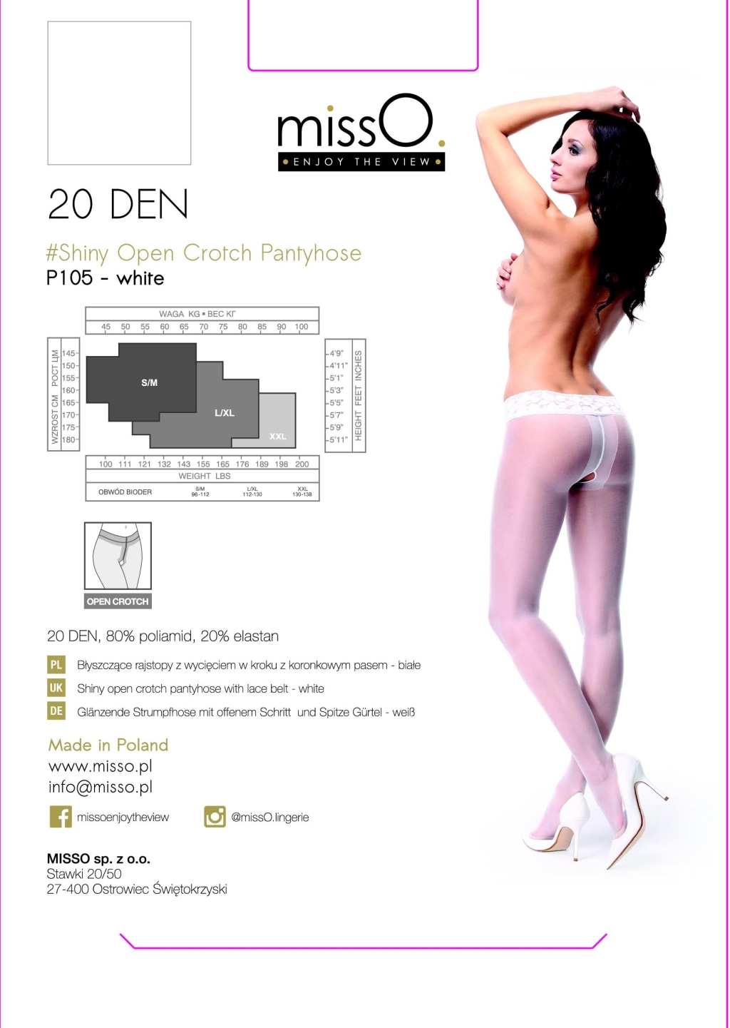 Rajstopy przeznaczone do wszelakich erotycznych uciech, bowiem rozcięcie w kroku bardzo ułatwia dostęp do miejsc intymnych, jednocześnie nie rujnując garderoby. Grubość klasyczna, 20DEN, będzie wygodna i dobrze się nosząca czy to w sypialni czy do codziennego ubioru, spod którego dopiero później ukaże się w całej krasie.