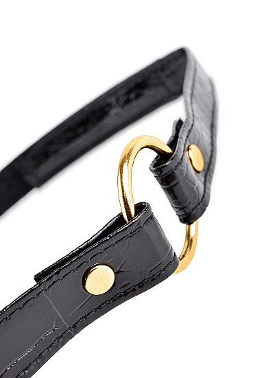 PIPEDREAM Fetish Fantasy Gold - Elagancki knebel złote pierścienie skórzany