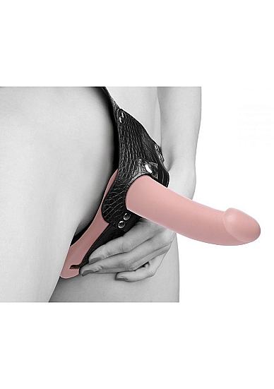 Większe dildo jest szczupłe i eleganckie, aby zapewnić wygodną penetrację odbytu lub pochwy partnerki. Seksowna i regulowana uprząż utrzymuje dildo w miejscu nawet dla najbardziej energicznych ruchów nacisku!