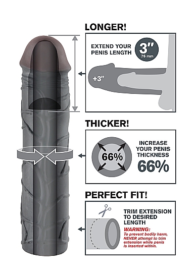 Mega rozszerzenie 7,5 cm to konfigurowalne rozszerzenie, które można łatwo przyciąć u podstawy, aby idealnie pasowało. Jest bardzo rozciągliwy, aby pomieścić większość rozmiarów i wystarczająco wygodny, abyś mógł dłużej wytrzymać. Twój partner będzie cieszył się głębszą penetracją dzięki przedłużeniu na końcówce, podczas gdy ultra-naturalny penis będzie o 66% grubszy. Miękki materiał Fanta Flesh jest jak druga skóra, która zapewnia długość, obwód i pewność, której potrzebujesz, aby zadowolić swojego kochanka.
