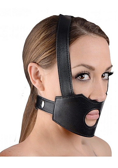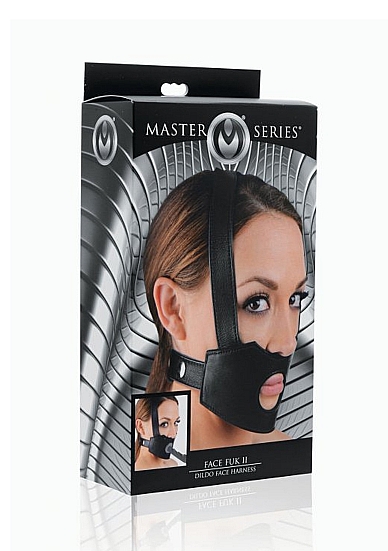 Ta uprząż zawiera paski, które pasują na szyję i nad głową, zapewniając bezpieczne i w pełni regulowane dopasowanie. Ponieważ dildo znajduje się tuż nad ustami użytkownika, dostarcza to dodatkowych wzrokowych atrakcji.