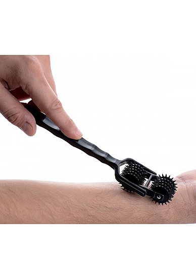 Podwójne koła obracają się o 360 stopni, pozwalając poczuć każdy trzpień. Zawiąż w ciemności swojego kochanka i prowadź tę rozkosznie prostą zabawkę nad wrażliwymi częściami ciała. Wygodny uchwyt sprawia, że narzędzie czuje się jak w domu. Przesyłaj dreszcze od stóp do głów dzięki temu wyjątkowemu instrumentowi do dokuczania zmysłów.