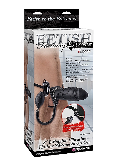 Inflatable Vibrating Hollow Silicone Strap-On - 8 Inch - Black
