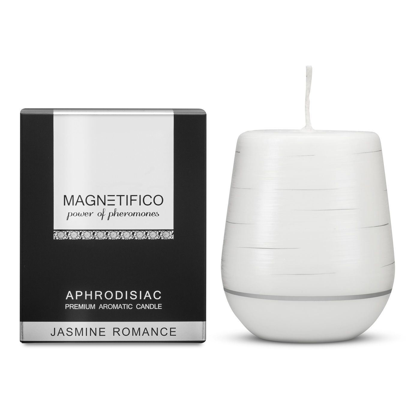 Afrodyzjakowa świeca uwalniająca nuty zapachowe kwiatu jaśminu z serii APHRODISIAC od MAGNETIFICO - power of pheromones - tworząca wyjątkową, intymną i uwodzicielską atmosferę.