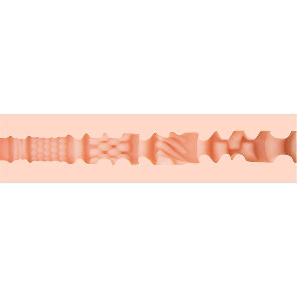 Przez środek masturbatora biegnie otwór w kształcie widocznym powyżej na zdjęciu. Taka forma została dobrana by maksymalnie realnie odzwierciedlić uczucie seksu analnego lub też fellatio czyli obciągania.