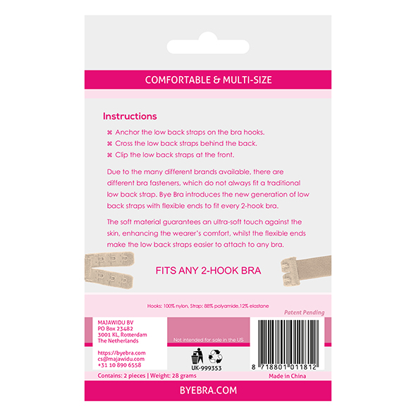 Krzyżak do biustonosza dwie haftki - Bye Bra Flexible Low Back Straps 2-Hook Nude (2x)