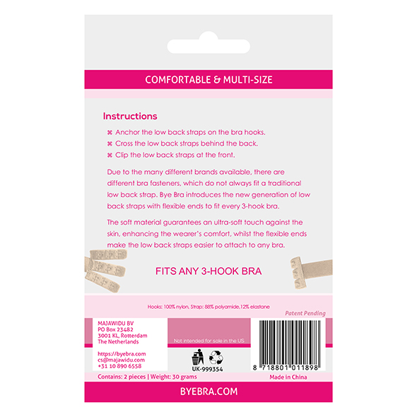 Krzyżak do biustonosza trzy haftki - Bye Bra Flexible Low Back Straps 3-Hook Nude (2x)