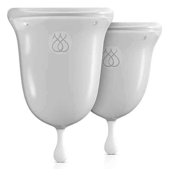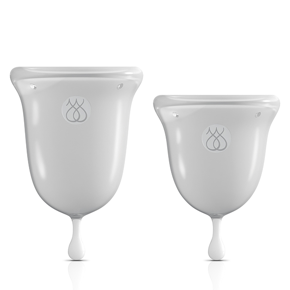 W komplecie znajdują się dwa kubeczki, o pojemności zależnej od obfitości krwawienia. Wykonano je z silikonu, a kształt odwróconego dzwonu daje wygodnie noszone wypełnienie oraz dobrze przyciskające od wewnątrz obrzeże, dzięki któremu nic nie wycieknie poza kubeczek.