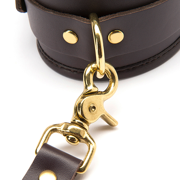 Luksusowe kajdanki - Coco de Mer Leather Wrist Cuffs L/XL Brown