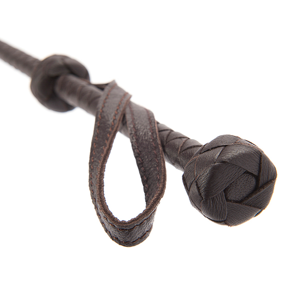 Jest moc. Pięknie prezentująca się szpicruta, która w sprawnych rękach jest w stanie wywołać krzyk rozkoszy i bólu. Rękojeść o starannym oplocie, wygodnie leży w dłoni. Wzbogacono ją o pętlę, by uzyskać większą kontrolę nad zamachem, i z wyczuciem dawkować siłę oraz miejsce, w które uderza. Trzon odpowiednio sprężysty, packa klasycznej wielkości, uderzająca z seksownym trzaskiem.