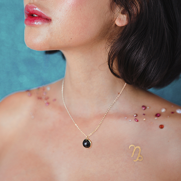 Wisiorek z kamieniem przypisanym do znaku zodiaku, elegancki, nie mający charakteru erotycznego.
