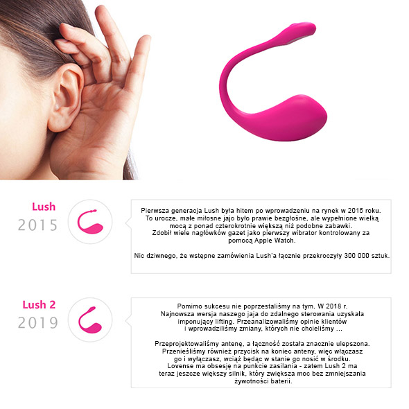 Pierwsza generacja wibratora Lush była hitem po wprowadzeniu go na rynek w 2015 roku. To urocze, małe miłosne jajo było prawie bezgłośne, ale wypełnione wielkim ciosem z ponad czterokrotnie większą mocą niż podobne zabawki. Zdobił też nagłówki gazet jako pierwszy wibrator kontrolowany za pomocą Apple Watch.