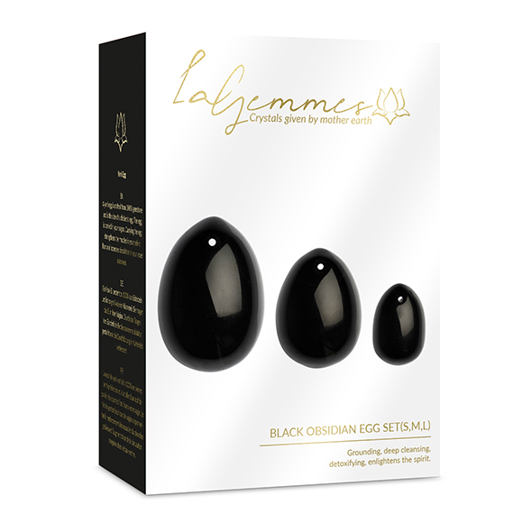 Zestaw kamiennych jajeczek yoni waginalnych - La Gemmes Yoni Egg S-M-L Obsydian