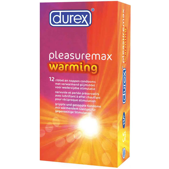 Prezerwatywy DUREX PLEASUREMAX WARMING z dodatkiem żelurozgrzewającego, mają prążkowaną powierzchnię z wypustkami, co pozwalana dodatkową stymulację u obojga partnerów; zawartość żelu owłaściwościach rozgrzewających intensyfikuje odczucia; strukturapowierzchni, zawartość żelu oraz właściwości "easy on" (łatwośćnakładania, dobre przyleganie, komfort użytkowania) powodują, żedoznania partnerów są maksymalnie spotęgowane.