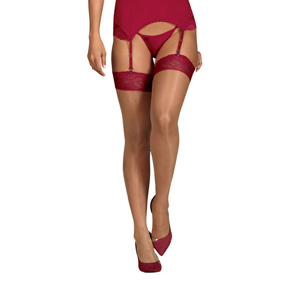 Czerwone seksowne pończochy - Obsessive Rosalyne Stockings Red