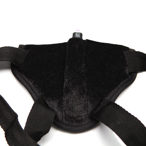 Zestaw obejmuje także mały wibrator, wyjmowany, który mieści się w specjalnej kieszonce na przodzie uprzęży. Pracuje w trzech prędkościach, pobudzając obie strony.