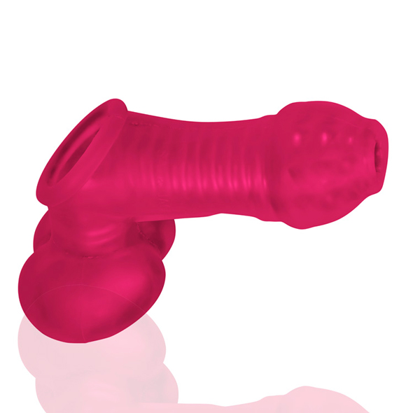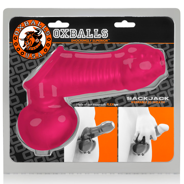 Pierścień na jądra z nakładką do masturbacji - Oxballs Sackjack Wearable Jackoff Sheath