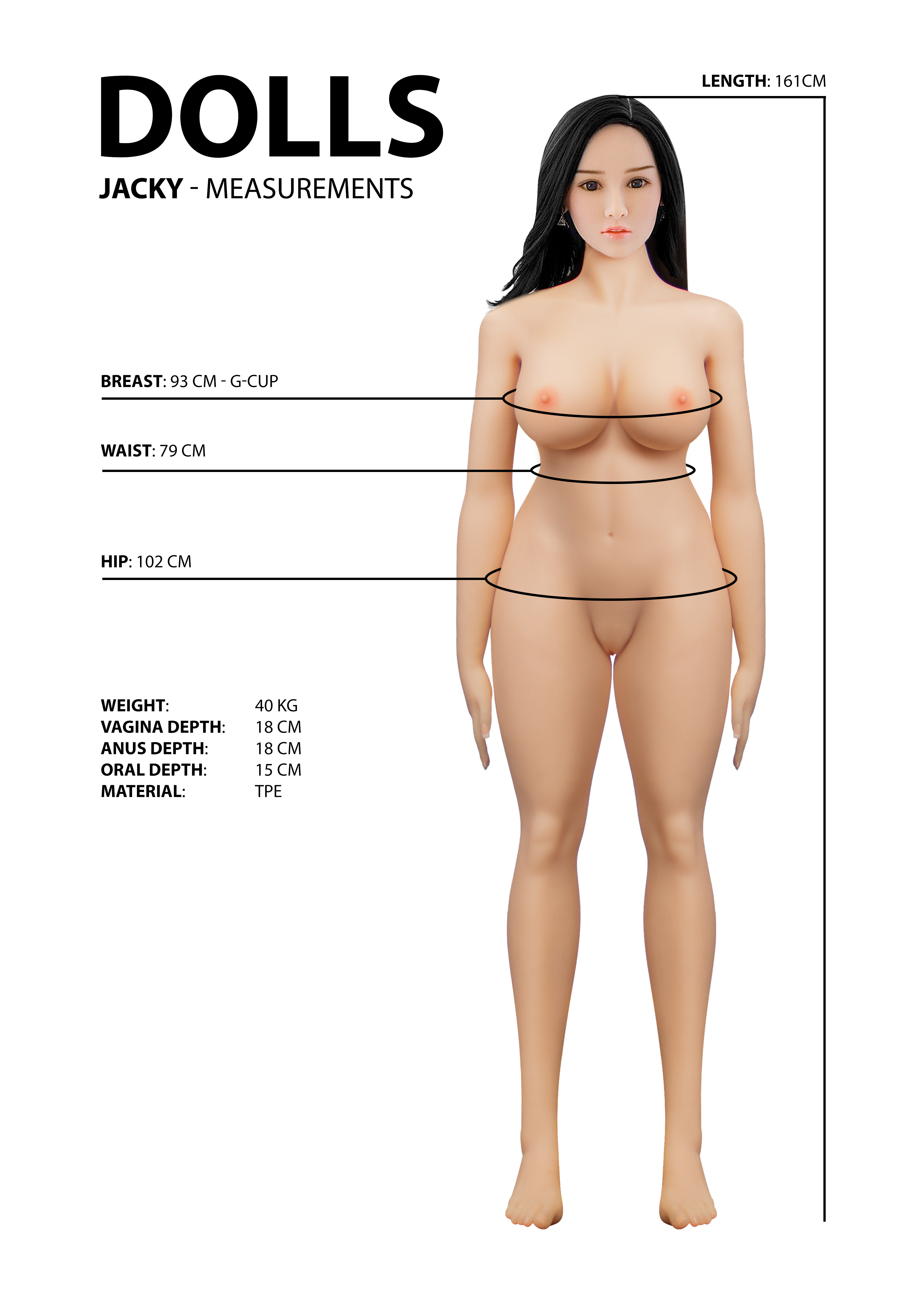 Jaśmina to swobodnie stojąca lalka wykonana z bezpiecznego dla ciała materiału TPE (najwyższej jakości materiał przypominający do złudzenia ludzką skórę i mięśnie).