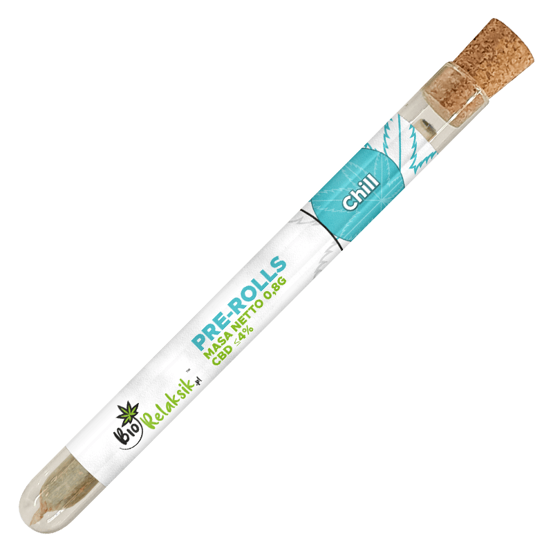 PRE-ROLLS CHILL 0,8g Pre-Rolls CHILL to rozkruszone kwiaty konopi odmiany CHILL z ekologicznych upraw, owinięte niewybielaną bibułką renomowanej firmy RAW. Odmiana o orzewiającym aromacie. Zawartość CBD: ≤4% FULL SPECTRUM pozwala na dostarczanie organizmowi kannabidiolu i innych fitoskładników. Zawartość kannabinoidów: CBD ≤4%, THC poniżej 0,2% 100% naturalny charakter i najlepsza jakość kwiatów oraz wysoki poziom flawonoidów i terpenów zapewniają niezwykłe doznania smakowe, które polubisz już od pierwszego użycia. Pre-rolls zapakowany jest do szklanej probówki z korkowym zamknięciem, dzięki któremu susz CBD zachowuje odpowiednią wilgotność. * Produkt nie jest przeznaczony do palenia ani waporyzacji |